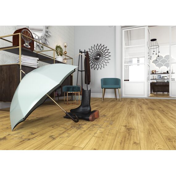 Kolekcja Symfonia powstała z inspiracji muzyką, gdzie drewno jest używane w wielu instrumentach. Panele 12 mm stanowią trwałe rozwiązanie dla największych przestrzeni, które nie boją się ani domowego ruchu, ani szampańskiej zabawy. Bezprogowy montaż oferuje bezkompromisowe możliwości aranżacji całego domu w jednym charakterze.