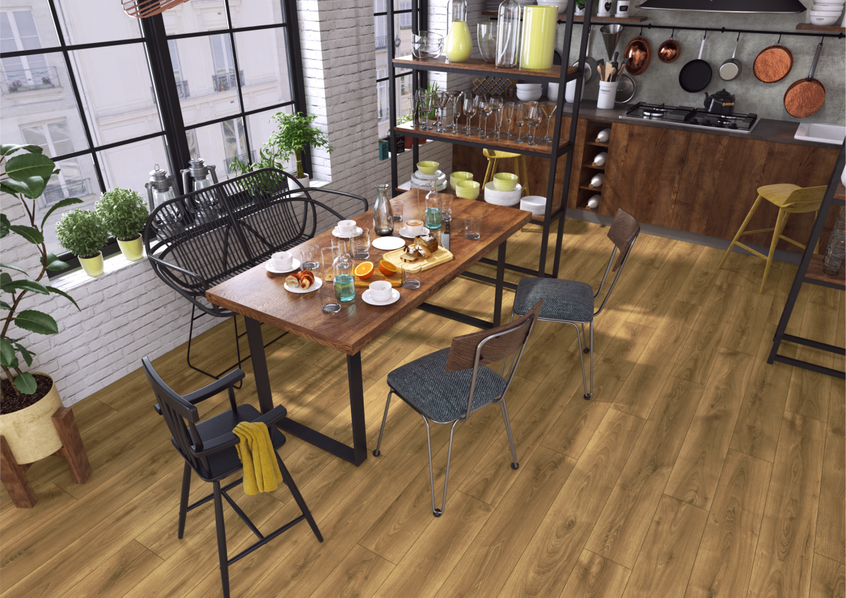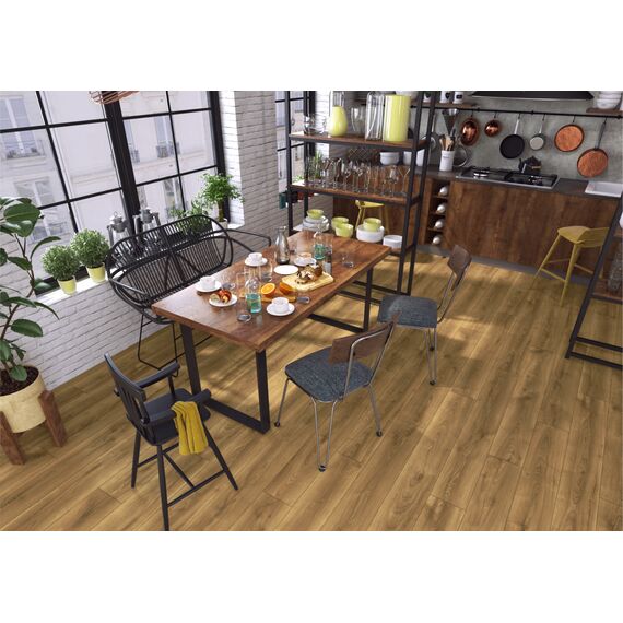 Kolekcja Symfonia powstała z inspiracji muzyką, gdzie drewno jest używane w wielu instrumentach. Panele 12 mm stanowią trwałe rozwiązanie dla największych przestrzeni, które nie boją się ani domowego ruchu, ani szampańskiej zabawy. Bezprogowy montaż oferuje bezkompromisowe możliwości aranżacji całego domu w jednym charakterze.