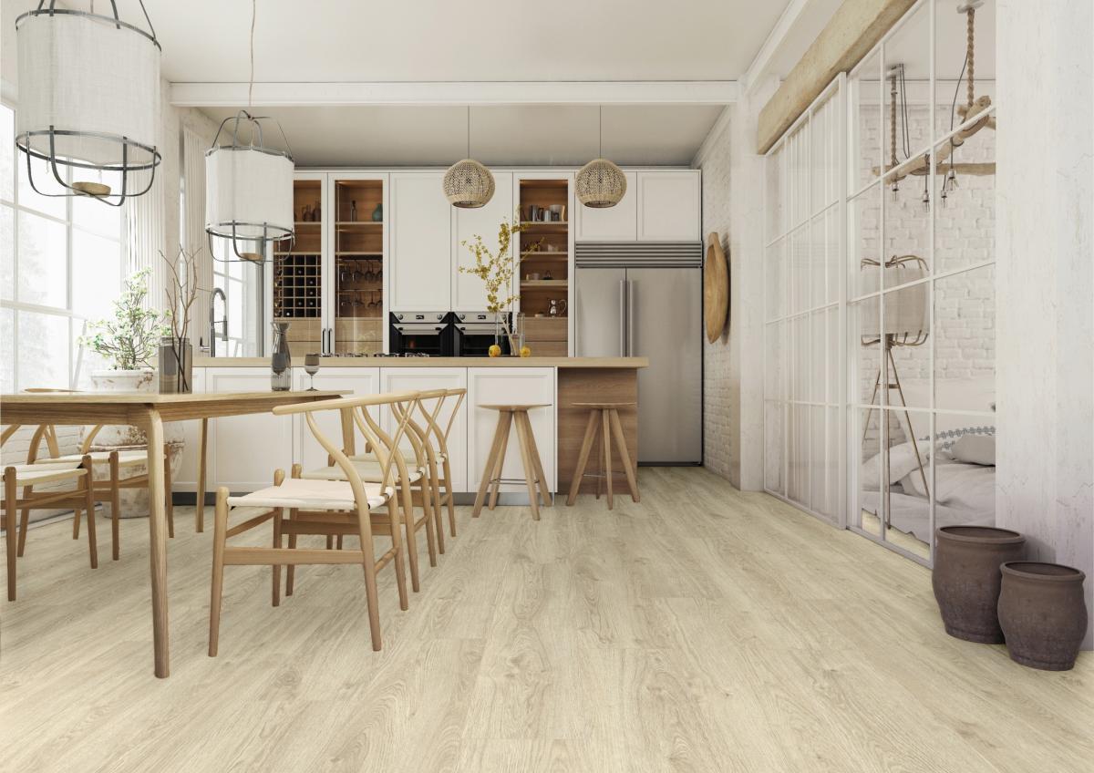 Szerokie deski podłogi Holiday i wodoszczelny zamek Aqua Pearl pomagają w zachowaniu czystości. Podłoga w technologii AQUA BLOCK to ułatwienie codziennego życia.