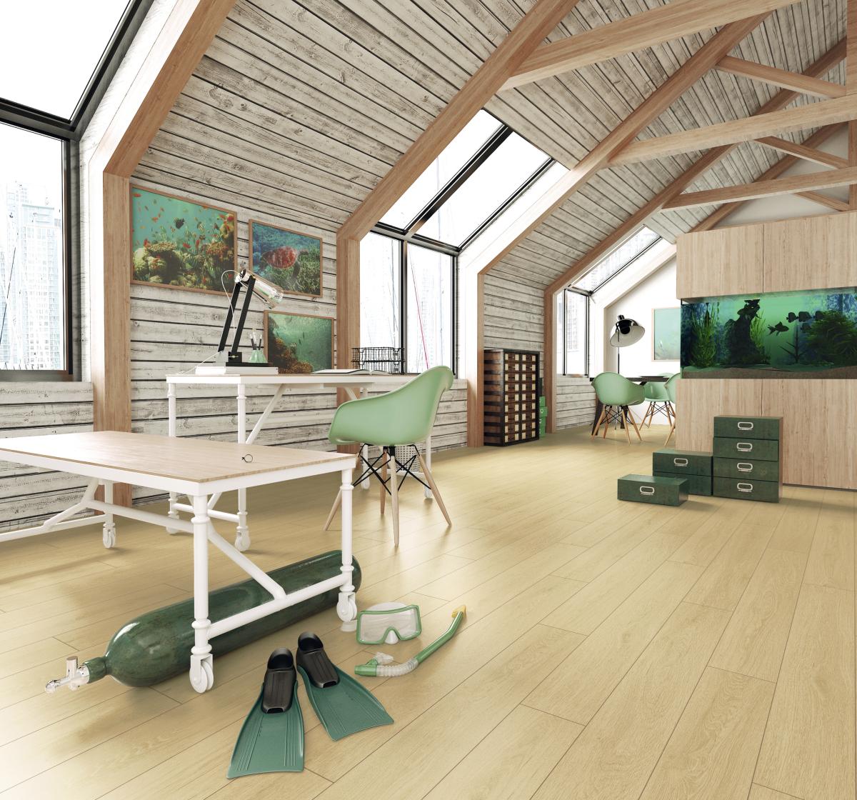 Panele podłogowe SWISS KRONO MARINE to kolekcja zaprojektowana z myślą o podwyższonej odporności na wilgoć i wymagające warunki użytkowania. Idealnie sprawdzają się w pomieszczeniach takich jak kuchnia, przedpokój czy inne przestrzenie narażone na kontakt z wodą.